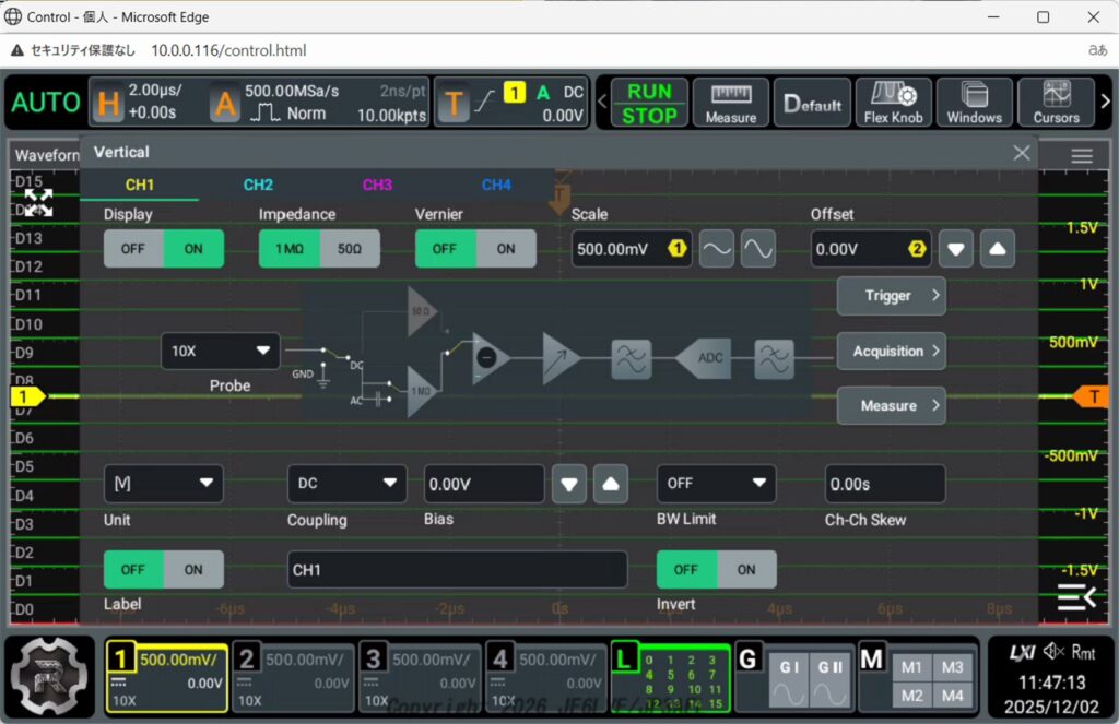垂直分解能12bitはともかくアナログ帯域は100MHzもあれば十分なのですが、限定に釣られて買ってしまいました。