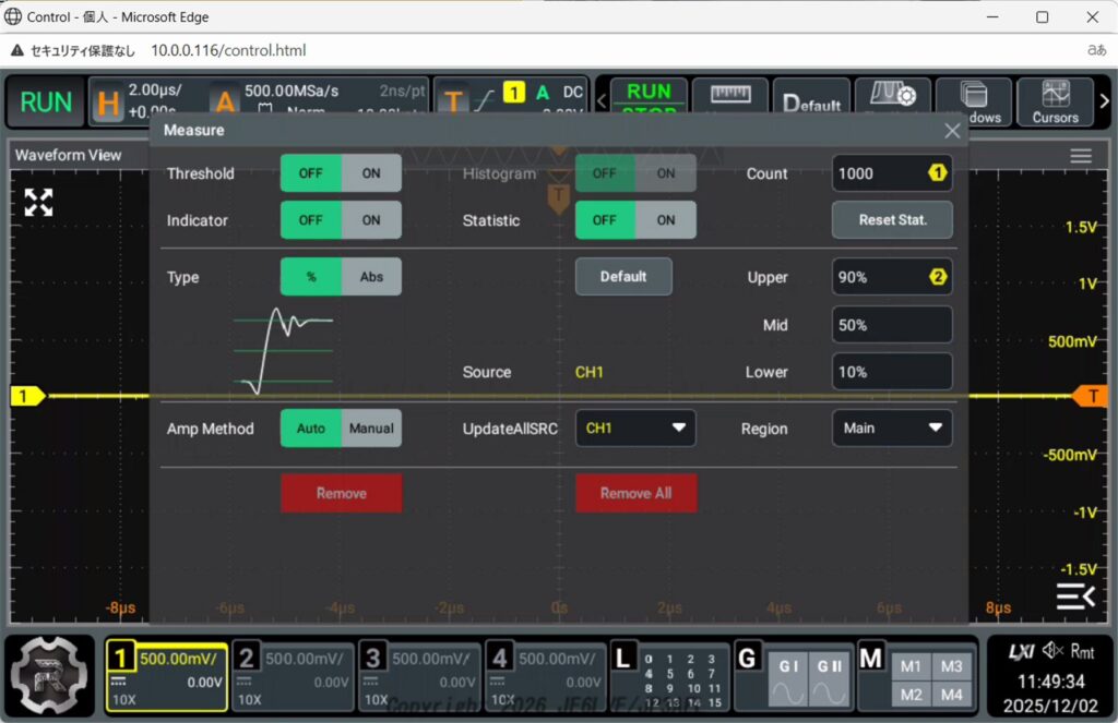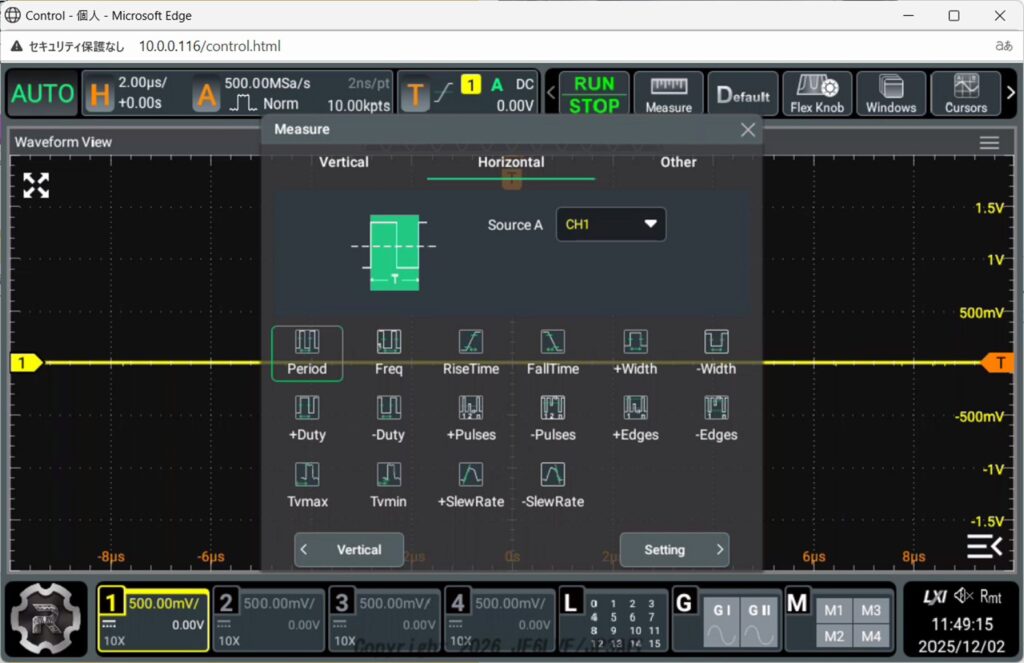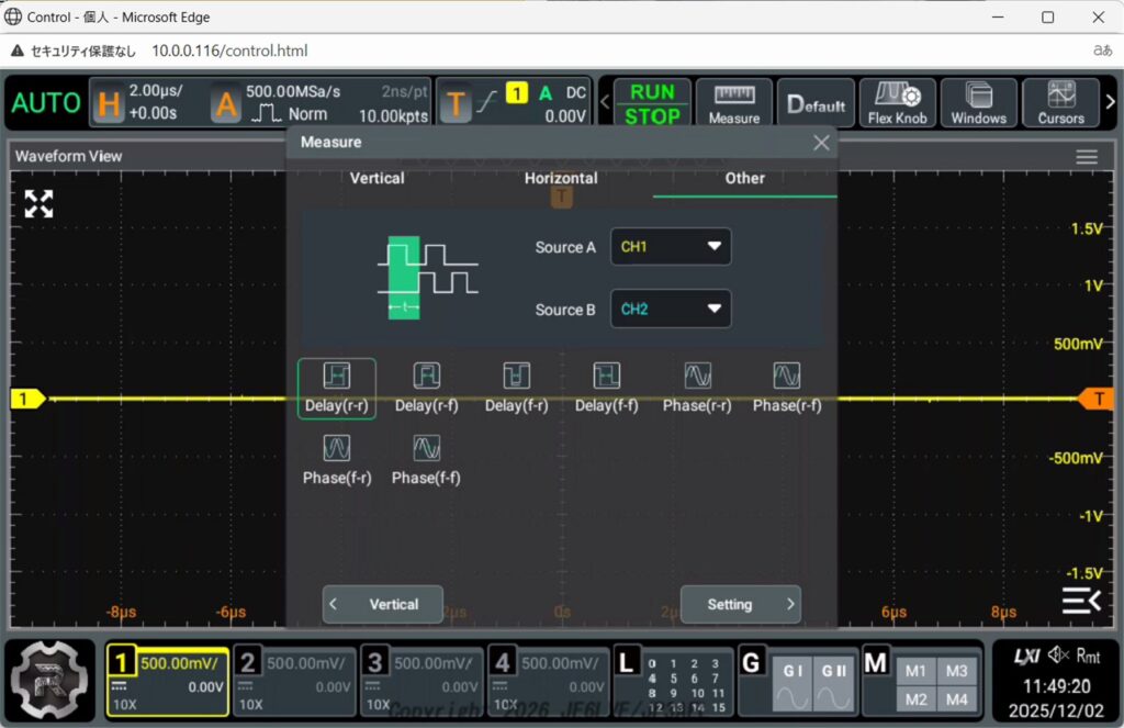 周波数帯域が1GHz、垂直分解能12bit、メモリ長500Mpt、ロジアナプローブに100MHzまでのFG 2Ch搭載、全オプション標準装備で約20万円という価格でしばらく悩みましたが限定にひかれてAmazonでポチっとしてしまいました。
