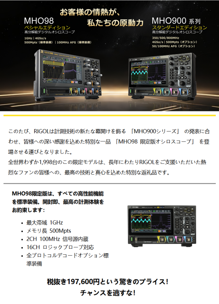 昨年の10月、RIGOLから届いたDMに1998台限定デジタルオシロの広告が掲載されていました。