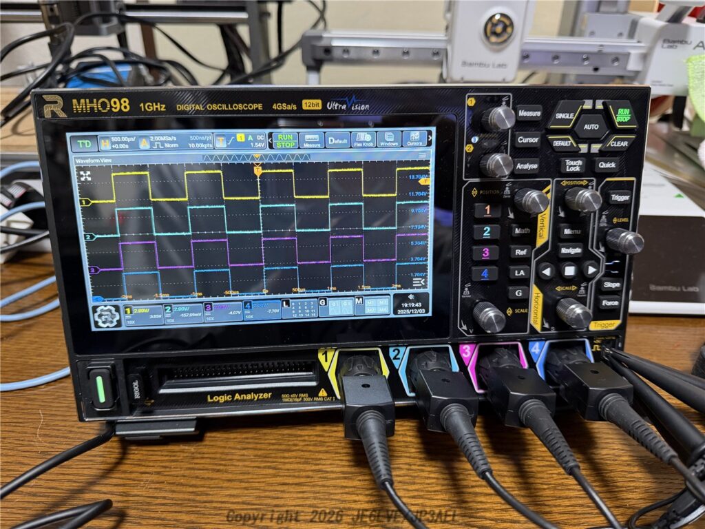 テクトロの4Ch 200MHz帯域のTDS2024BとRIGOL 4Ch 50MHz帯域のDS1054ZとMHO98